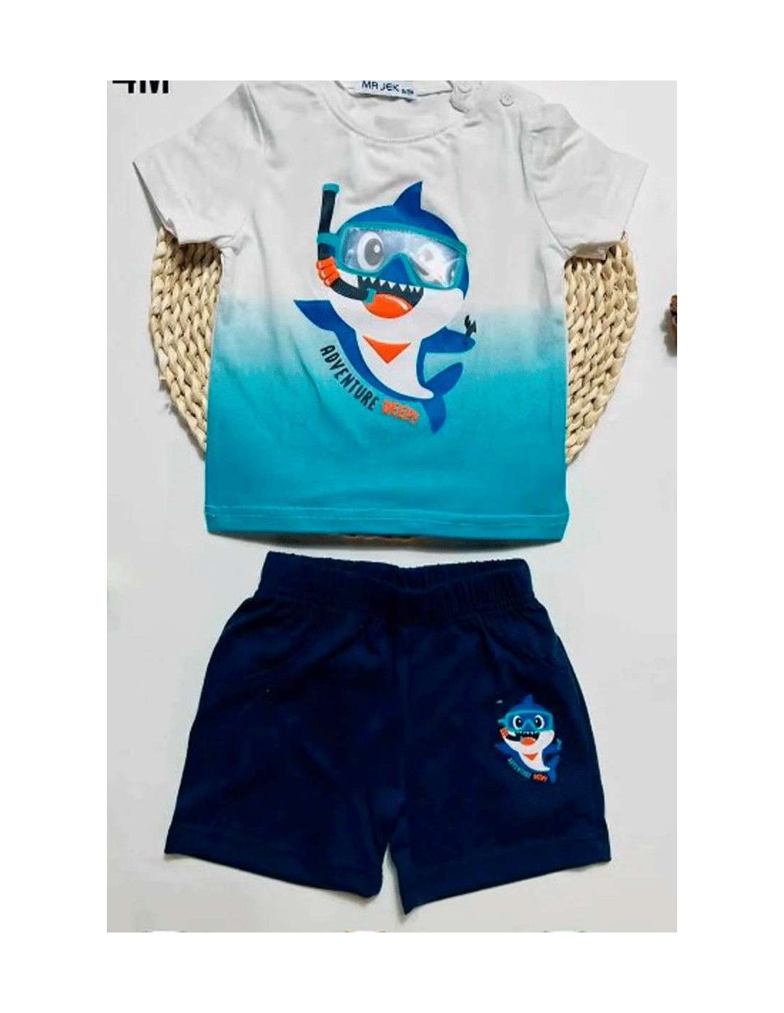 Conjunto de dos piezas para bebé niño formado por camiseta y un pantalón corto coordinado.