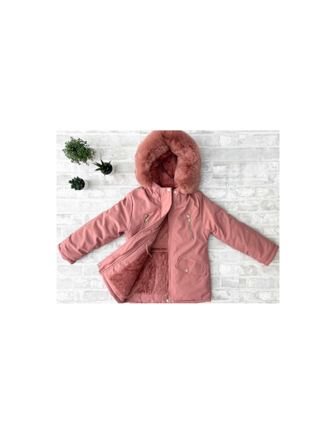 Chaquetón largo de manga larga para niña. Modelo con capucha.