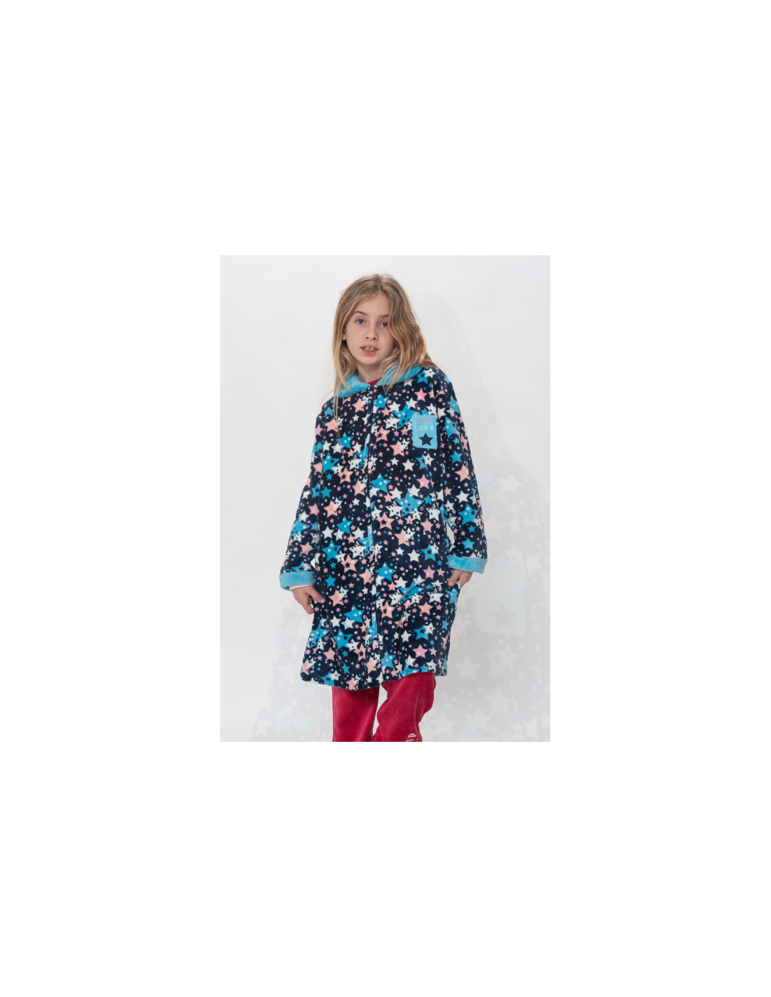 Bata o batín infantil en tejido coralina, este tejido es ideal para los días de invierno ya que proporciona calor al cuerpo. Un batín infantil es una prenda de vestir diseñada para mantener a la niña cómoda y abrigada. Suele ser una bata o batín (una especie de bata corta) que se usa sobre la ropa del bebé, generalmente después de un baño o durante la hora de dormir. Está hecho de materiales suaves y cómodos, como algodón, terciopelo o felpa, para asegurar la comodidad de la niña.